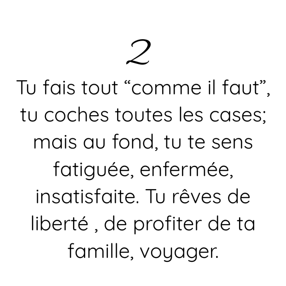 Tu te sens enfin alignée, fière d’avoir osé te choisir. Tes proches sont fiers de toi aussi, tu es un exemple pour tes enfants : un exemple de persévérance, un exemple que tout est possible avec de la volonté, que la réussite commence par une simple décision.